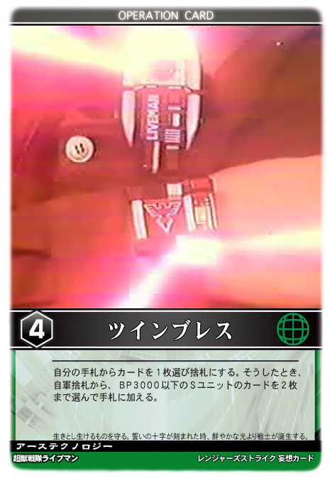 そうしたとき、自軍捨札から、BP3000以下のSユニットのカードを2枚まで選んで手札に加える。