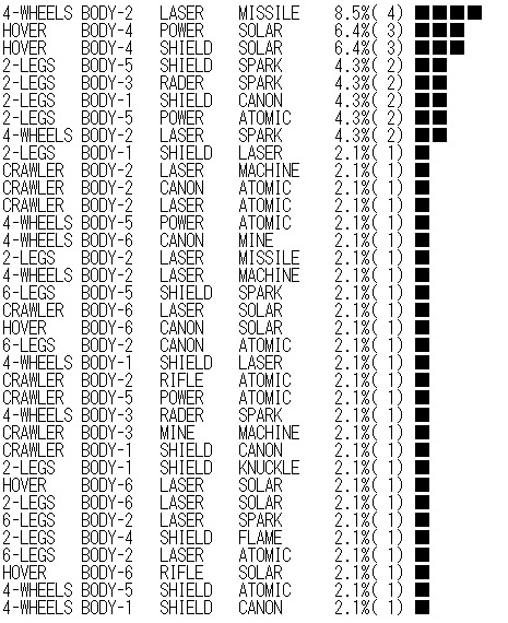 ここで、機種の傾向を見てみましょう。かっこの中の数字は、実際の台数です。