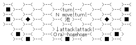EASYROBO、右斜め前方 5ヘクスにいる TURU を発見。転回後即座に
