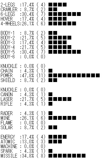 ●各ロボットの装備一覧表