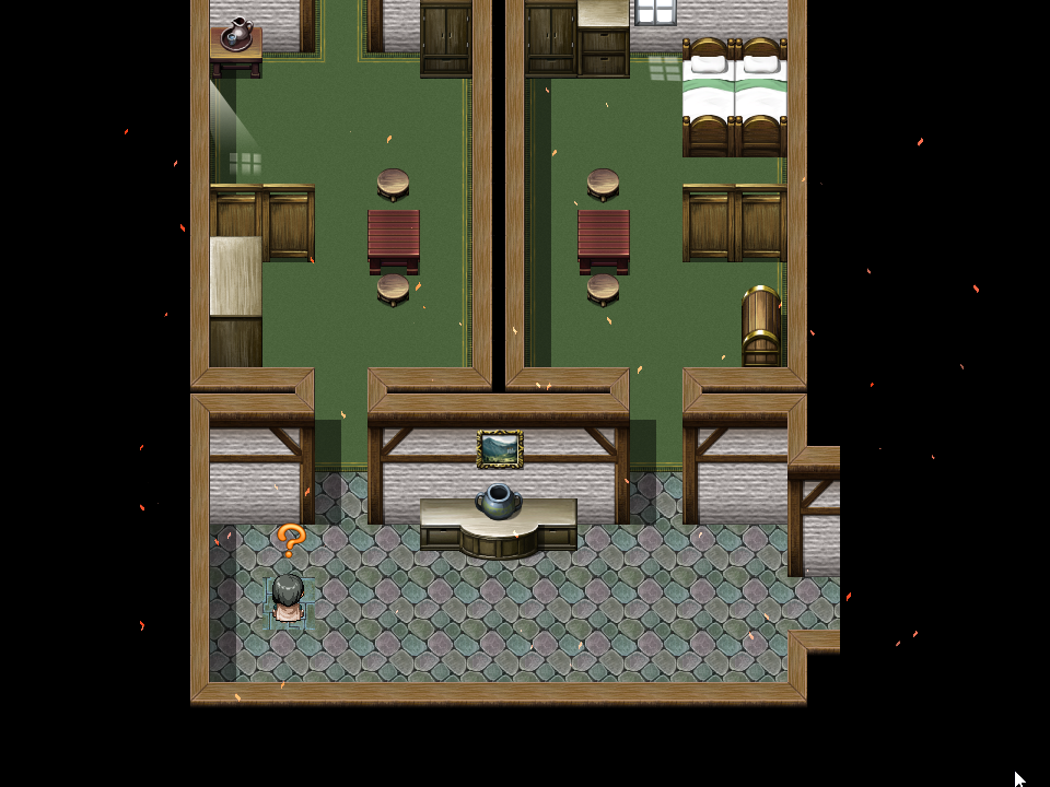 大食堂北の水上に赤と青の床が浮く所で赤い床を踏むと、南岸B1Fの退路が炎で塞がれた場所に飛ばされる。