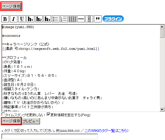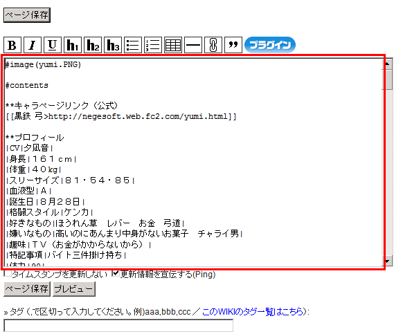 編集画面の下のほうに各種Wiki用タグが書かれています。