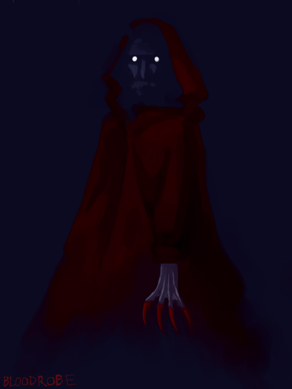 血のようにドス黒い赤のローブが宙を浮いたような姿をしており、フードからは赤い発光体が2つ覗かせている。