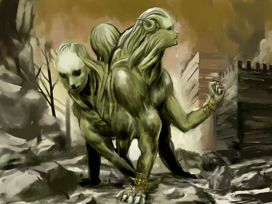 3つの顔と6本の腕を持つ巨大な異形で、全ての腕に強力な武器を持っている。