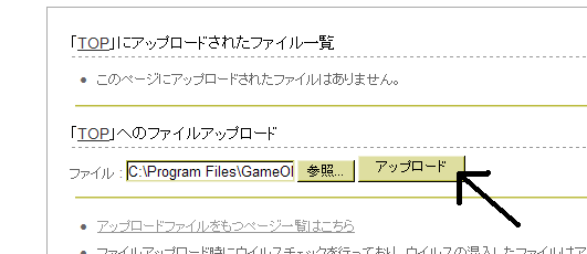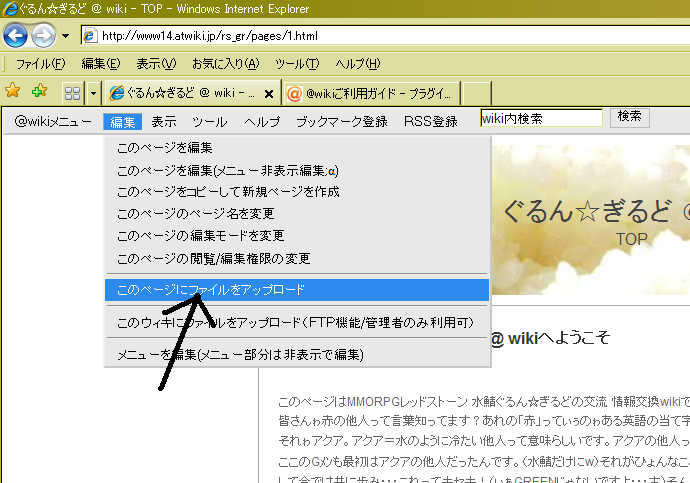 - ページ左上部にある 編集 のタブをクリックし、このページにファイルをアップロードをクリック