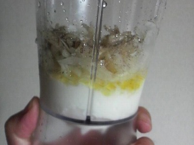 普通にネリネリ混ぜてもミキサーでがーっとやってもおk。