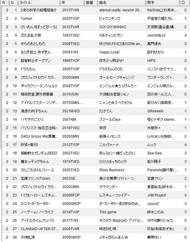 アニソンイントロ部屋(木曜)まとめ