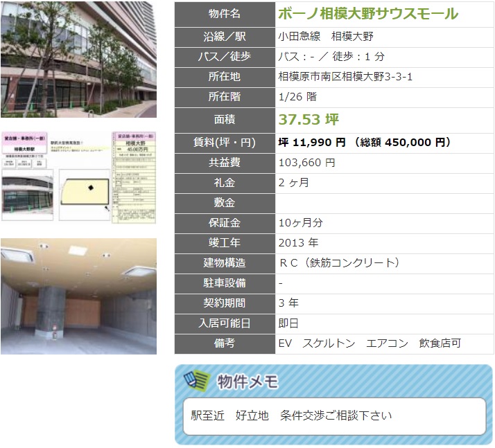 ボーノサウスモール1階26階建て 38坪賃料+共益費=553660