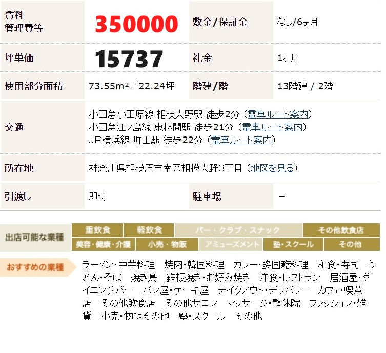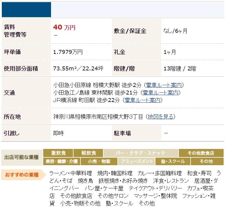 居酒屋、美容室(1Fにもありますが)、学習塾、クリニック医院、エステティック、飲食店全般