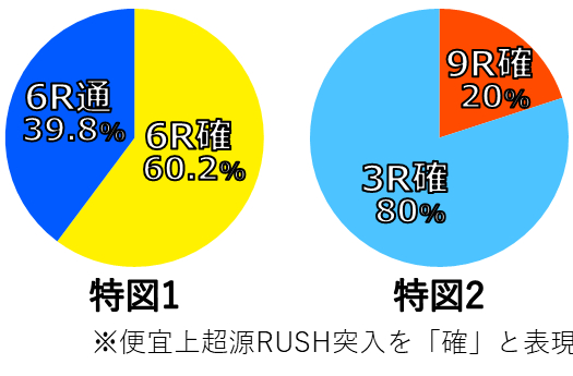 ★5 | (時短中)9R大当り | 30 | 超源RUSH中限定 | ・特図2直撃の9R大当り(*1)に当選し、消化後超源RUSHが継続する | ||