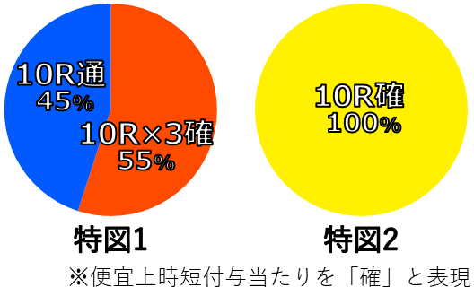 ・10R大当りor10R大当り×3に当選する ※10R大当りは時短非付与、10R×3当選率は55% |