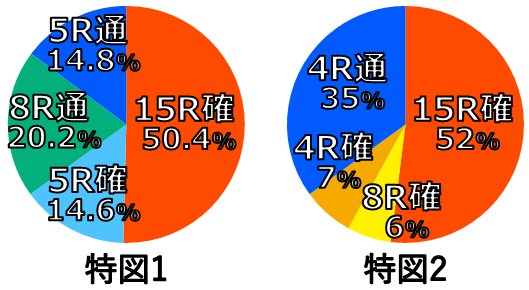 ★5 | 15R大当り | 30 | 15R大当り+確変から遊技を開始します。 | ||