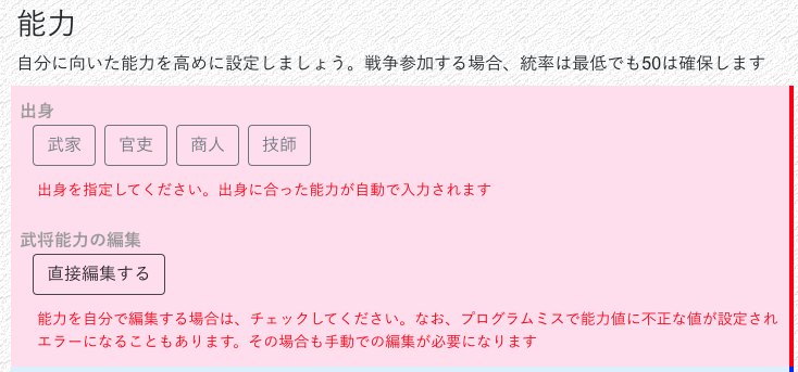 えみ よくわからないうちは、出身だけ選択して 能力は触らないほうがいいでちゅ |