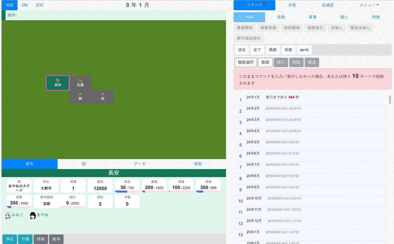 みねこ あたし、今回は仕官したいから あやねがさっき建国した長安を選ぶわね |