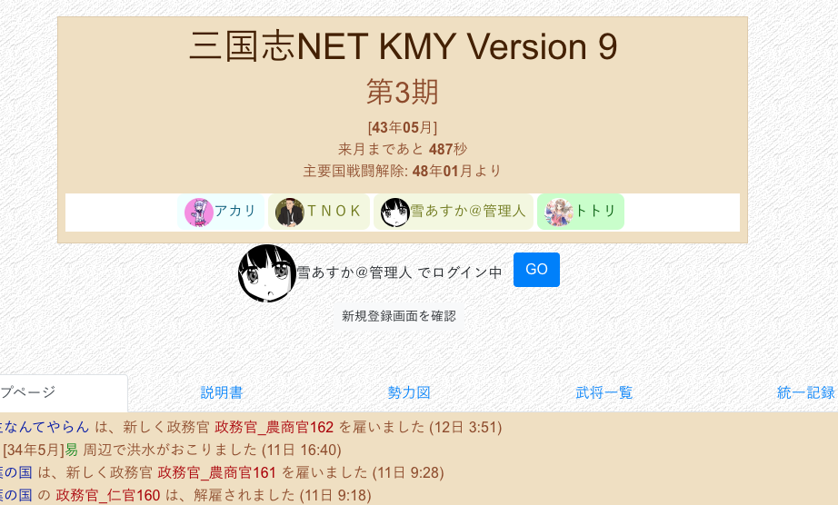 えみ ここは、計略、文明などの概念があって 他の三国志NETとは区別されているでちゅ |