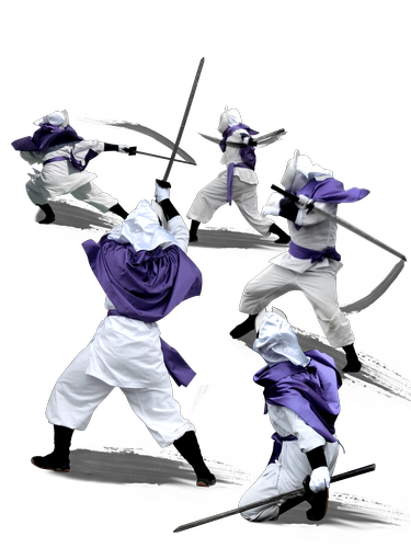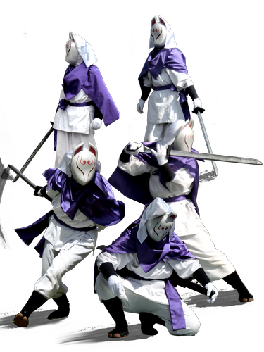 狐台風之術で回りながら隙を見計らい、それぞれの刀で敵の胴を挟みそのまま放り投げ、振りかぶって全員で横斬りを放つ。 |