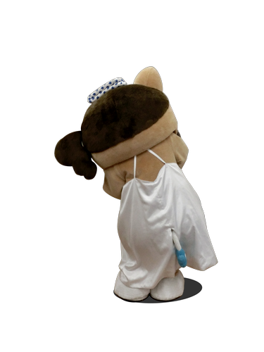 肌はツルピカで、頭には豚の足跡の模様をした豆絞りを乗せている。