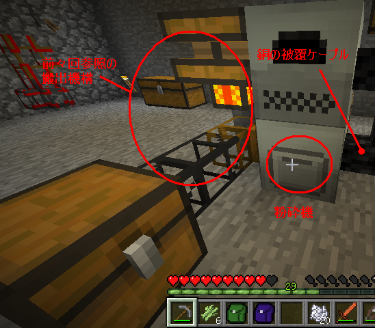 粉砕機の特性上、投入鉱石が64個の場合搬出を行わないとアイテムの粉砕が途中(32個)で中断されてしまいます。