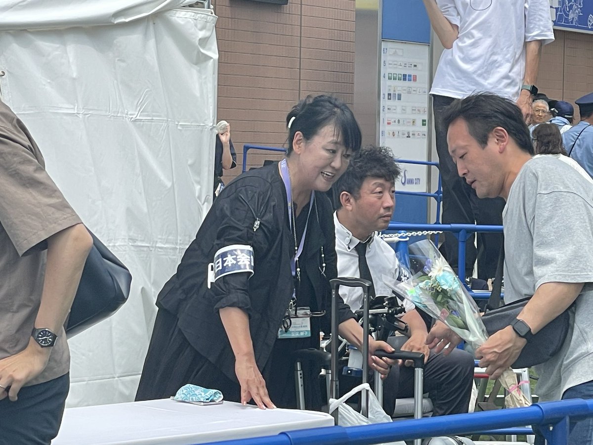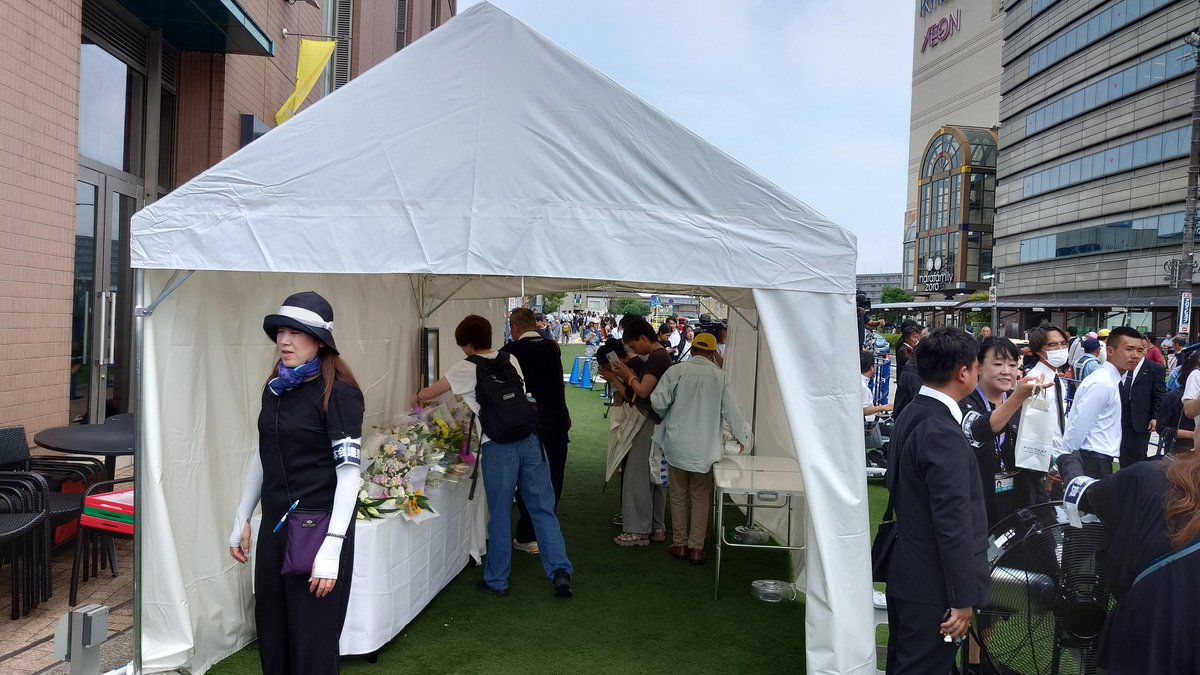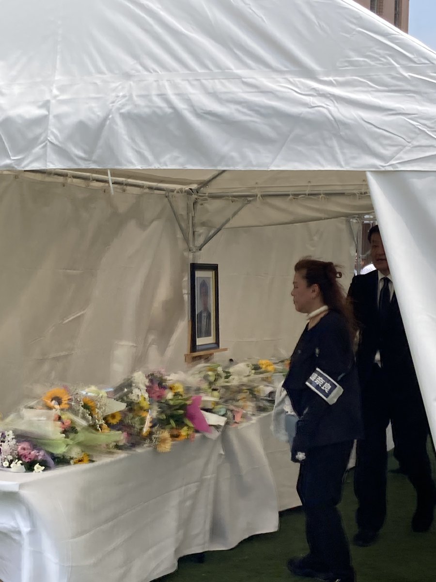 晋さんの命日、大和西大寺駅の献花スタッフ