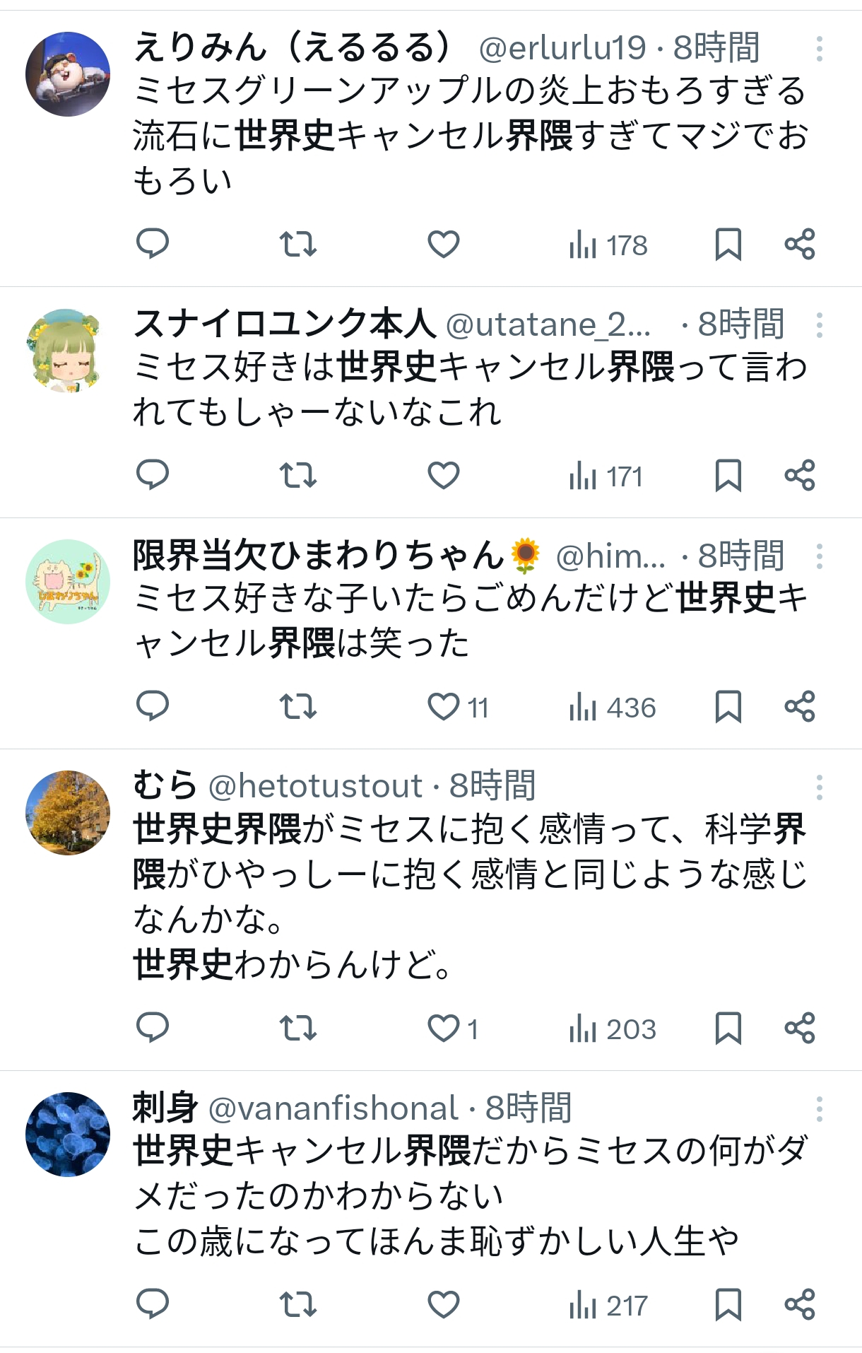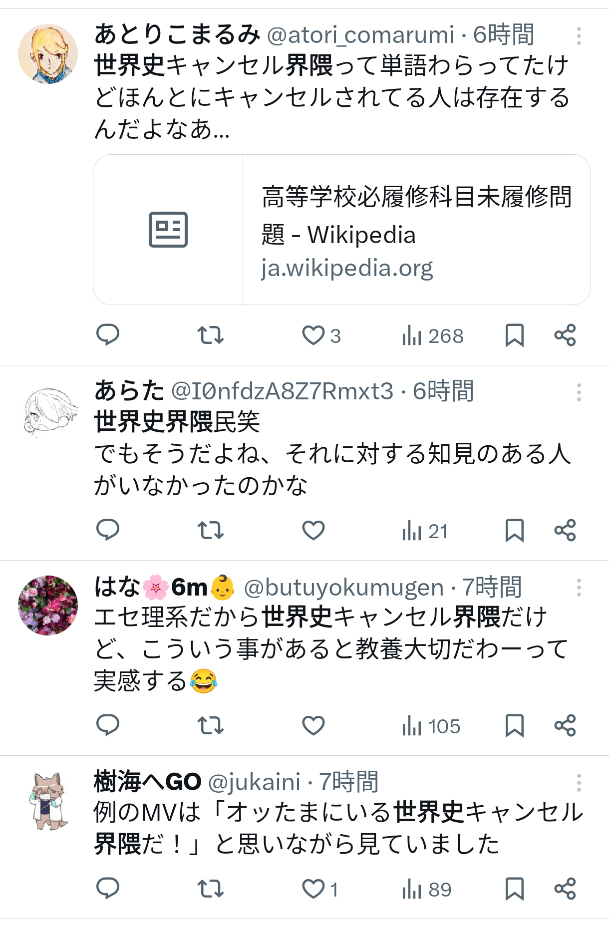 「世界史キャンセル界隈」と呼ばれる名言が生み出された。