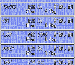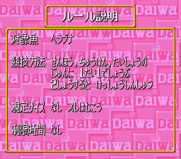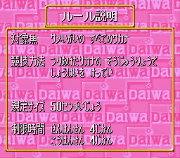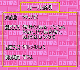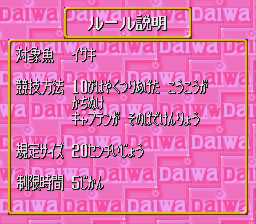 | 競技方法 | 釣り上げた魚の総重量で勝敗を決定。 |