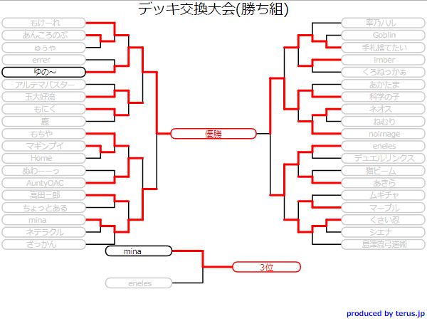 優勝:ゆの~さん(デッキ:高田三郎さん)