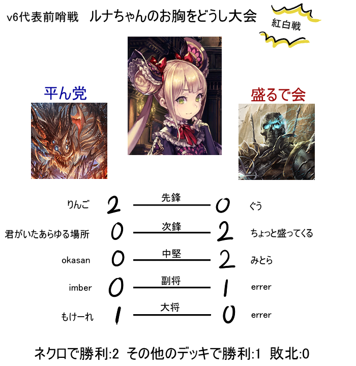 ・今回はルナちゃん杯なので特別ルールとしてネクロデッキを使用して勝利した場合勝利ポイントを2にします