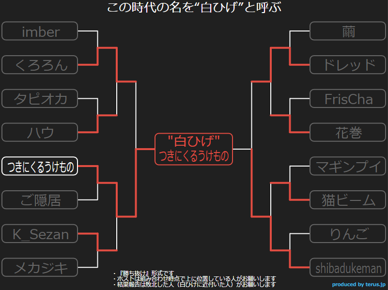 ※トーナメント表作成とマッチングは運営がフリーツールを利用して用意しました