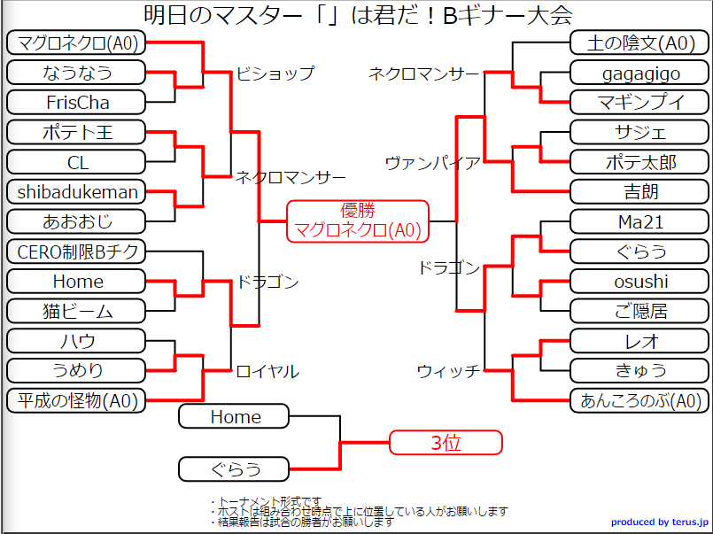 ベスト8分布:ドラゴン2、ネクロマンサー2、ロイヤル1(A0)、ウィッチ1(A0)、ヴァンパイア1、ビショップ1(A0)