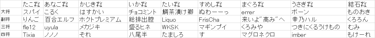 ・チーム対チームのマッチングによる対戦は以下の組み合わせで行う