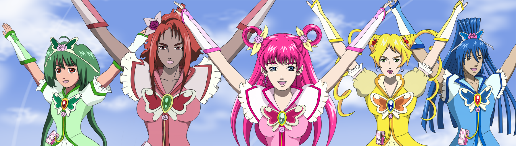 プリキュアシェリル。 プ~リキュ~ア♪ 左から、ランカ、カナリア、シェリル、キャシー、隠し玉アルト。 いろんな意味で強いです。
