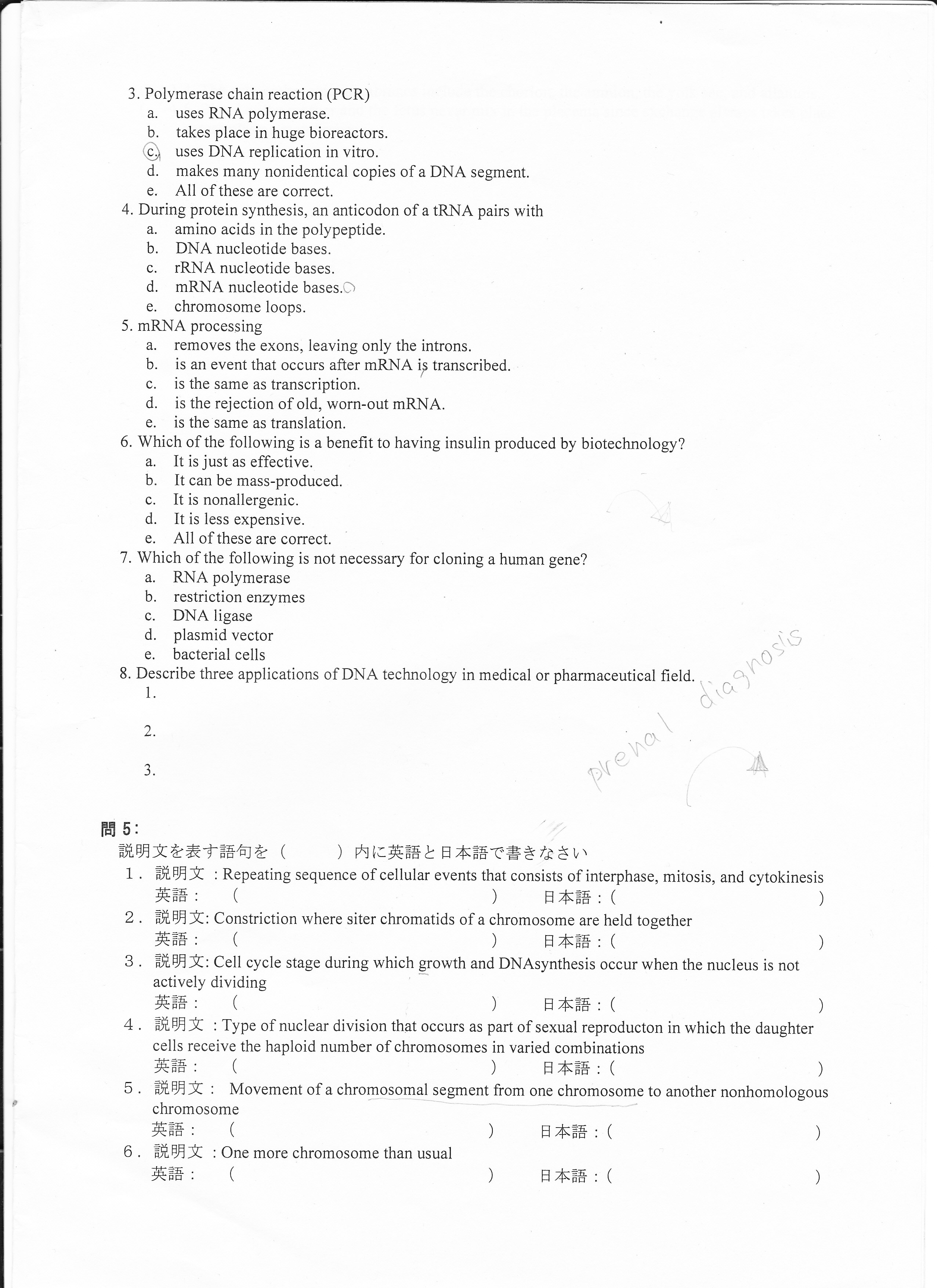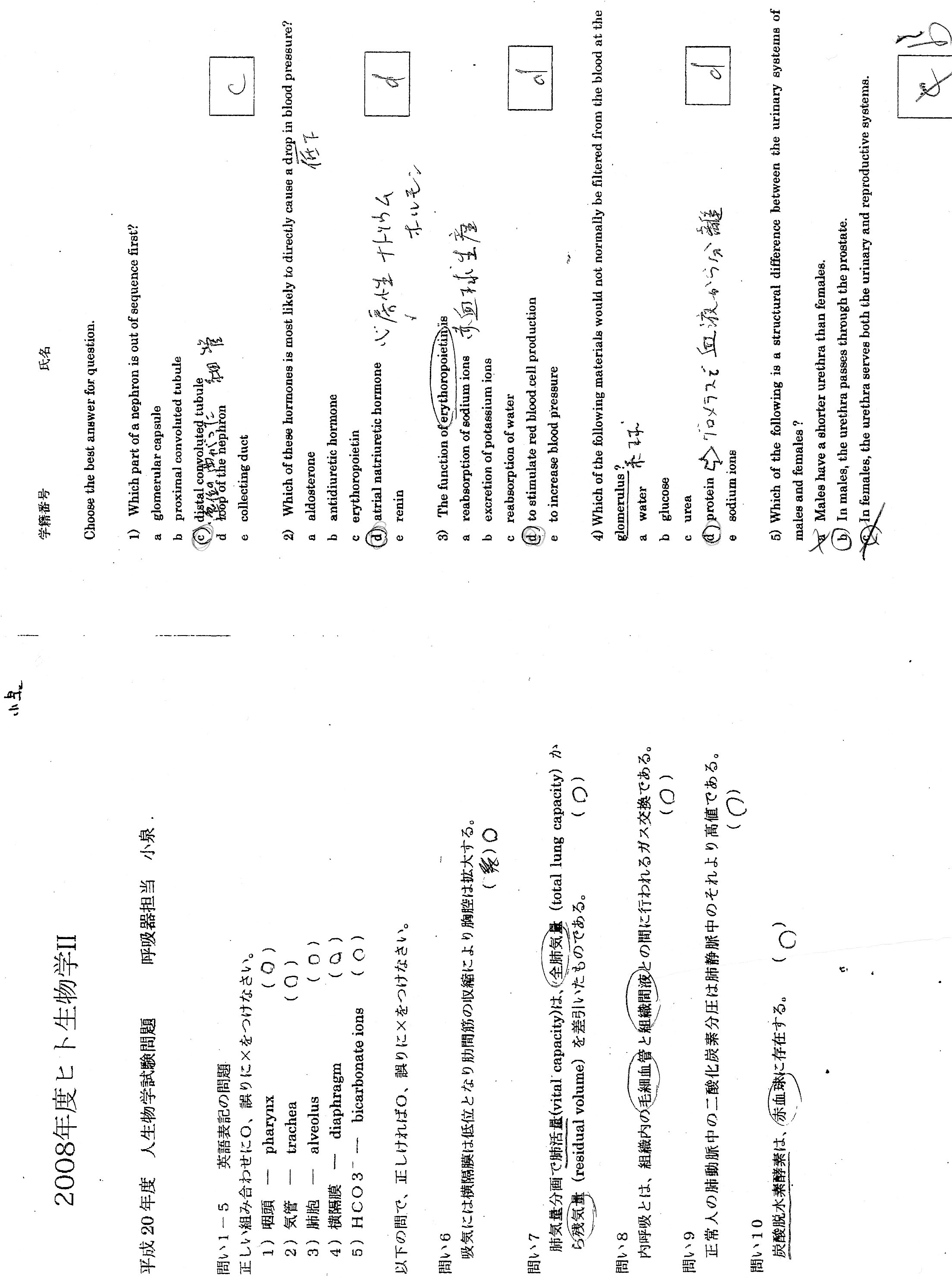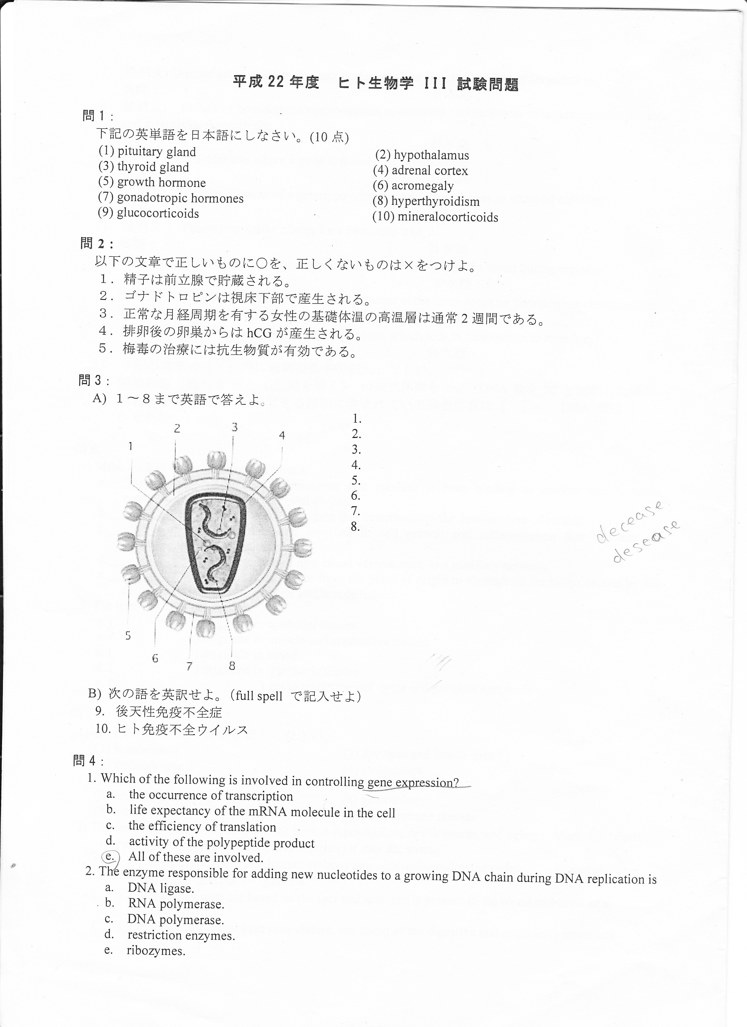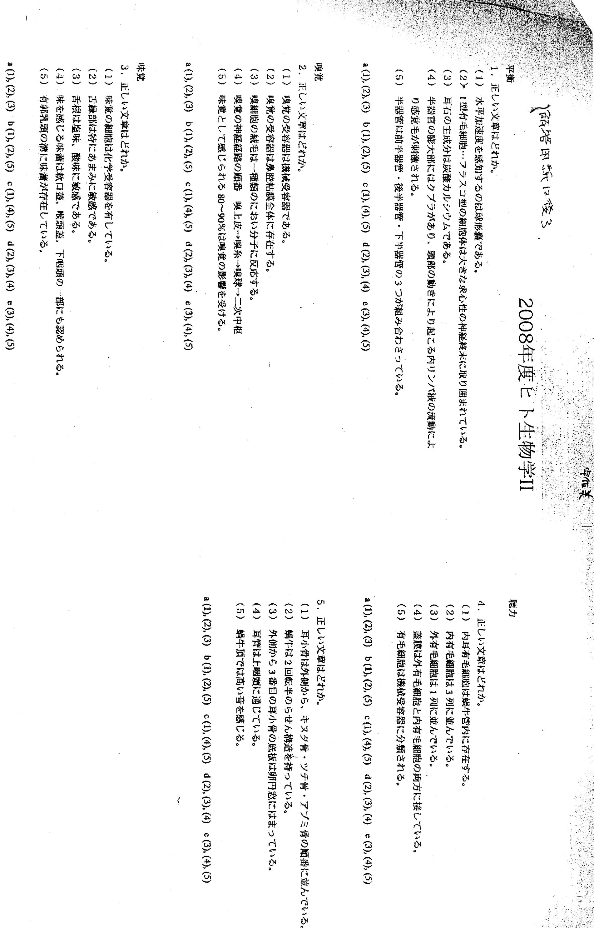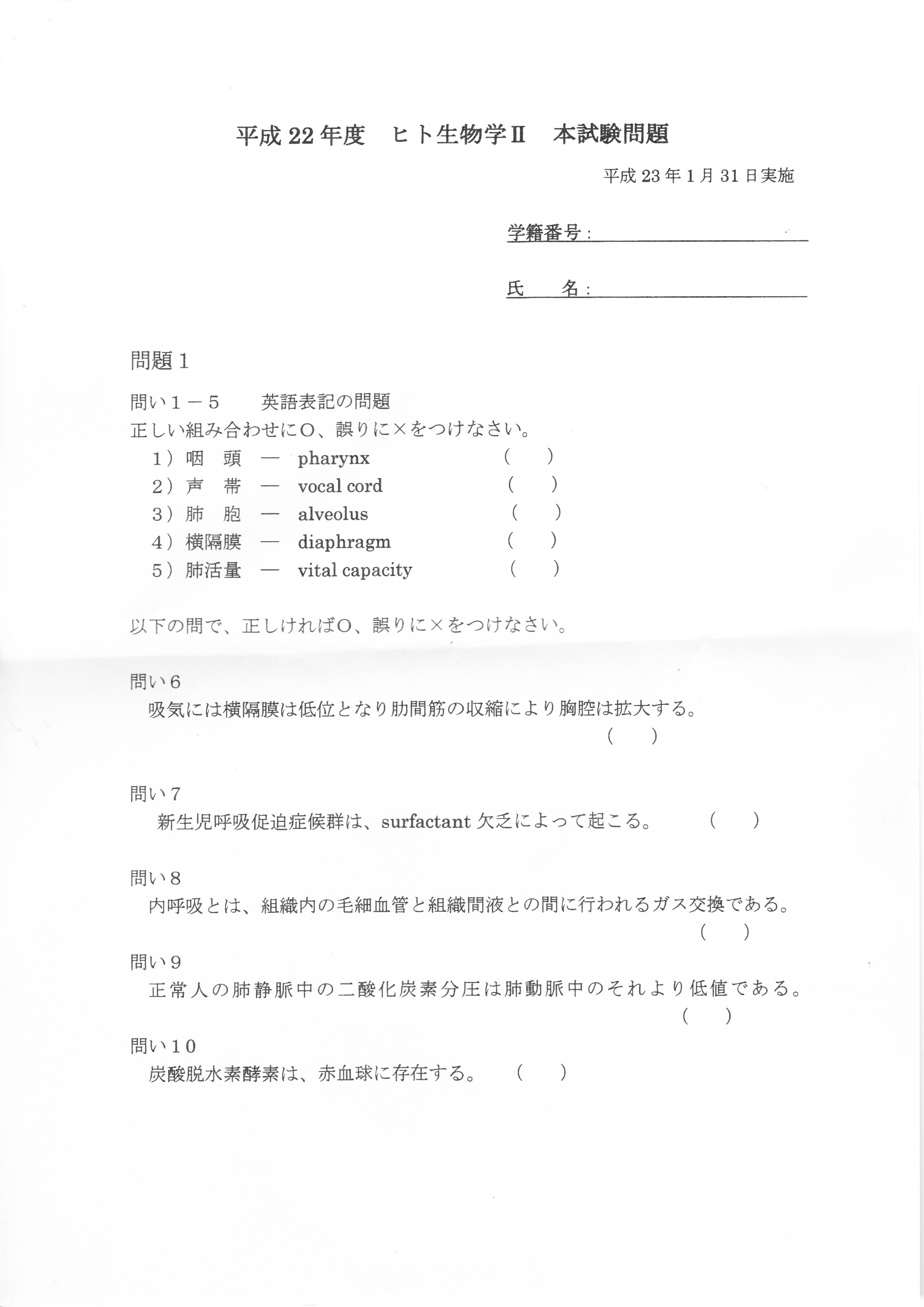 過去問のうち、出題範囲が全く同じなのは2011年度のみです。2010年のはヒト生3で、今回は問3と⑤は範囲外です。