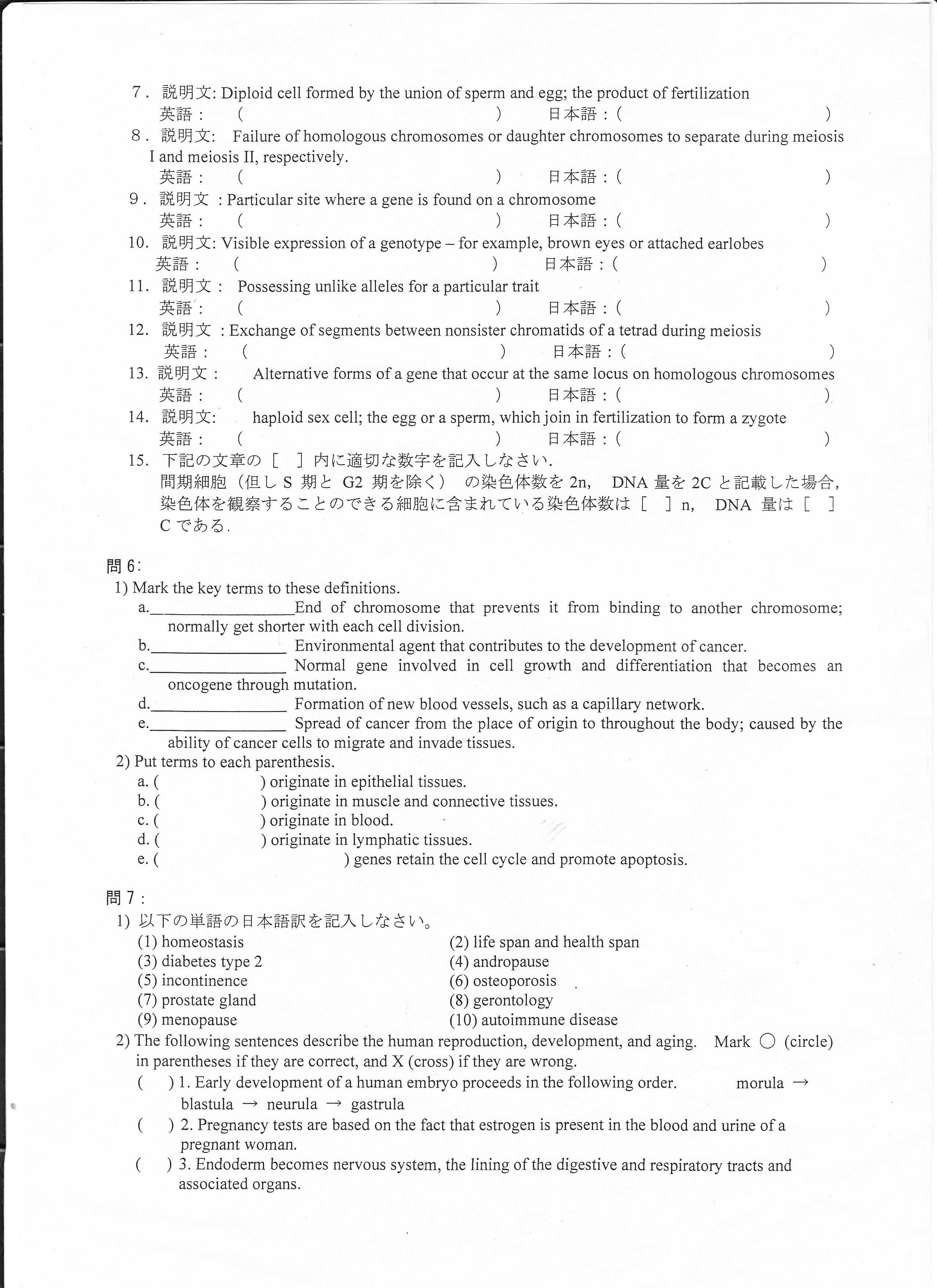 12/25, 1/6講義の準備案ファイルをupしました。「ヒト生物学(第19章講義準備案)」というdocファイルです。開く際パスワードが要求されます。メーリスに流すパスワードを入力してください。一応、ヒト生シケ対で16章和訳発表を担当していない方と、講義日の日付下一桁と学籍番号下一桁が一致している方を対象にしていますが、それ以外でも協力したい方は積極的な参加をお願いします。
