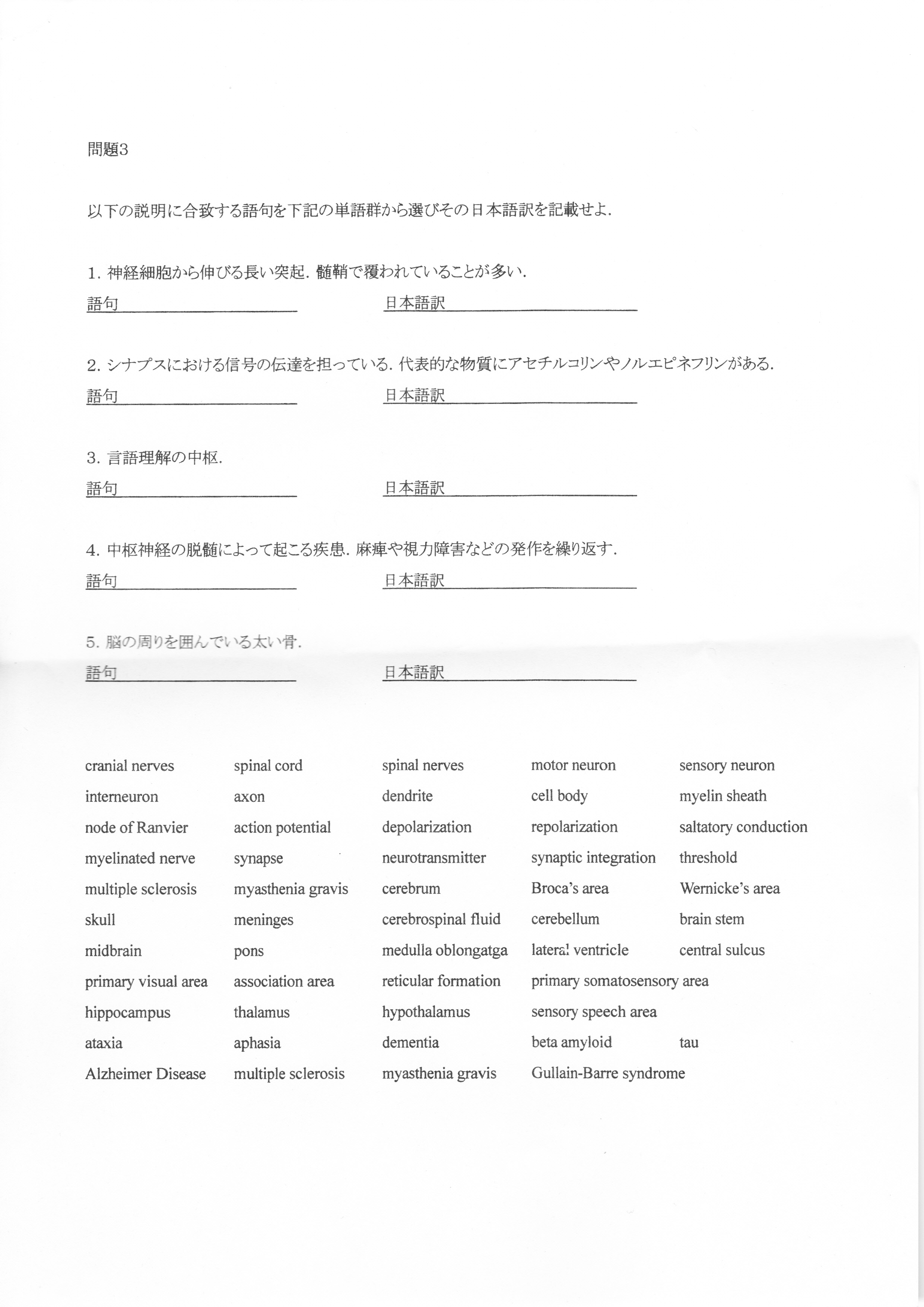 出る用語に偏りがあるのかはわかりませんが、これまでの単語リストをもとに、特に英語でかけるよう練習し、