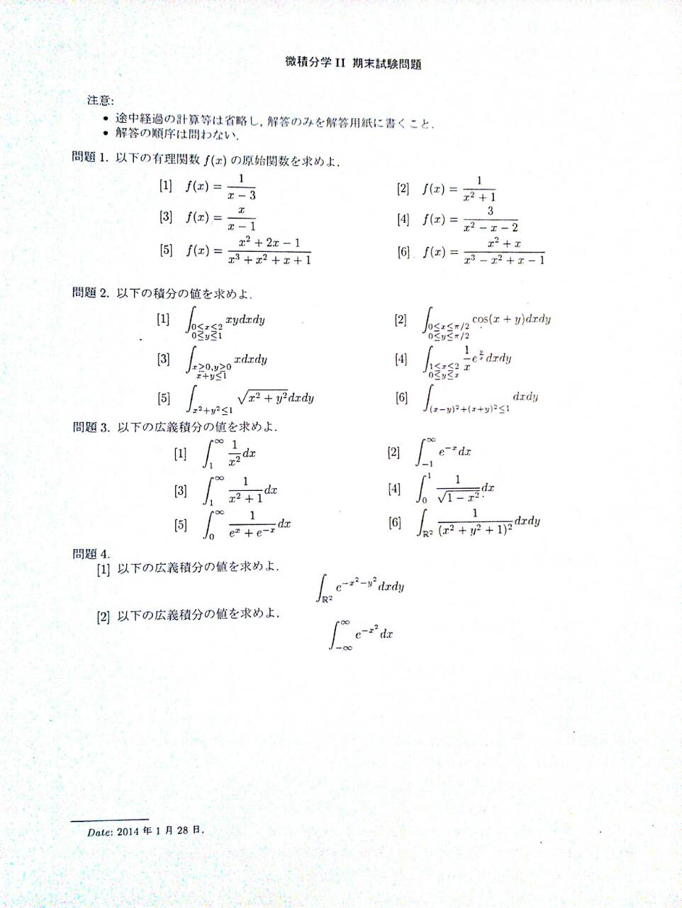 先ほど先生に尋ねたところ、今回の期末試験の問題も去年度の問題や今日授業中にやった模擬問題(既にアップされてるものと同じ)と同じ形式にする予定だそうです。