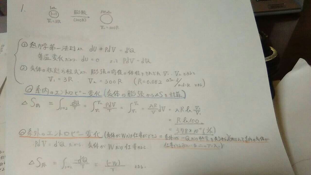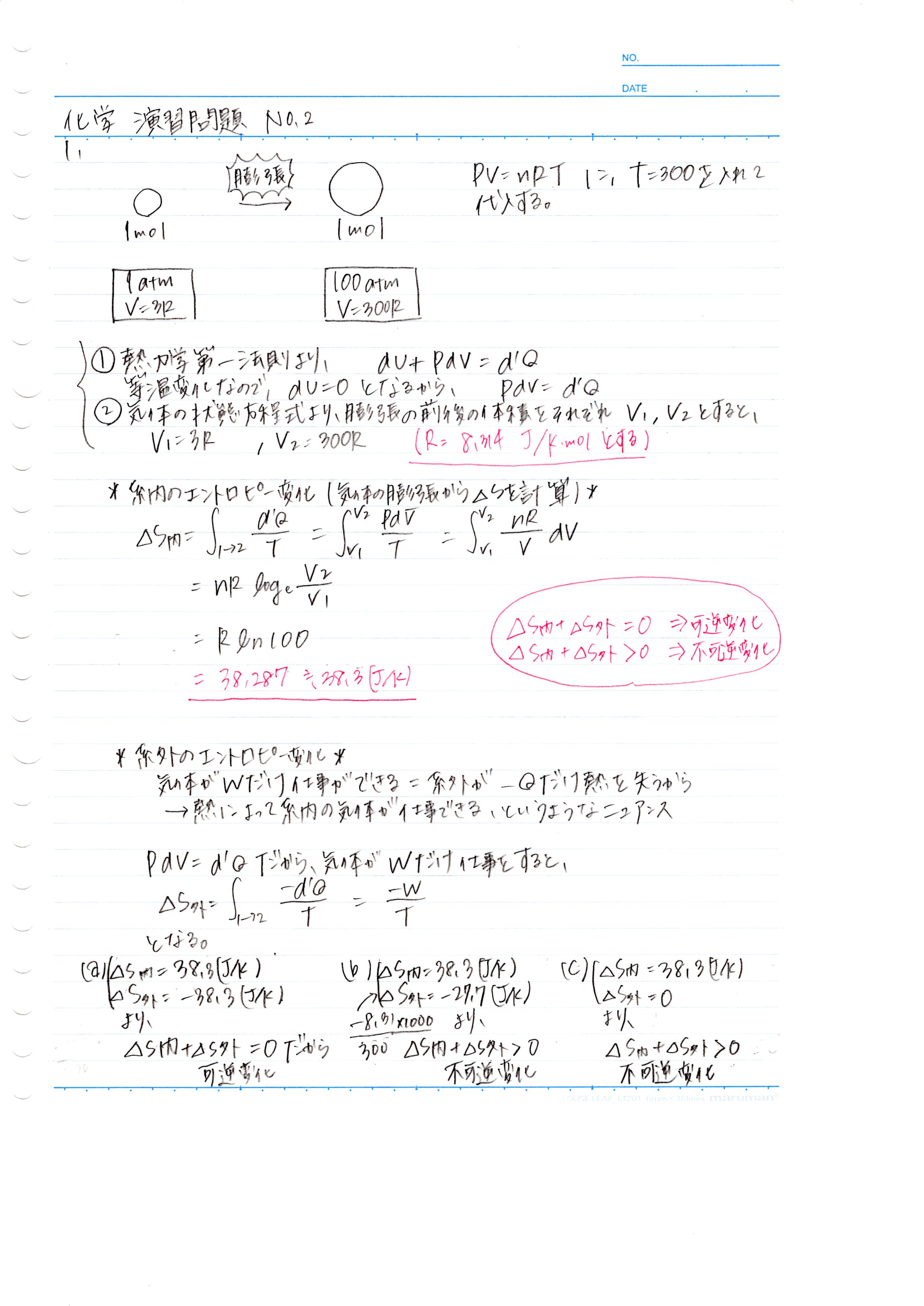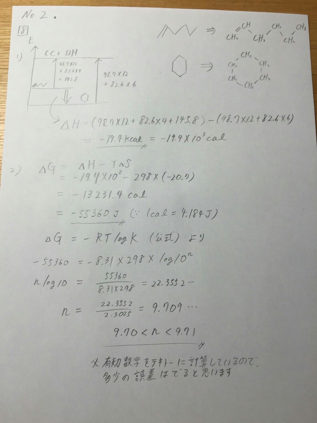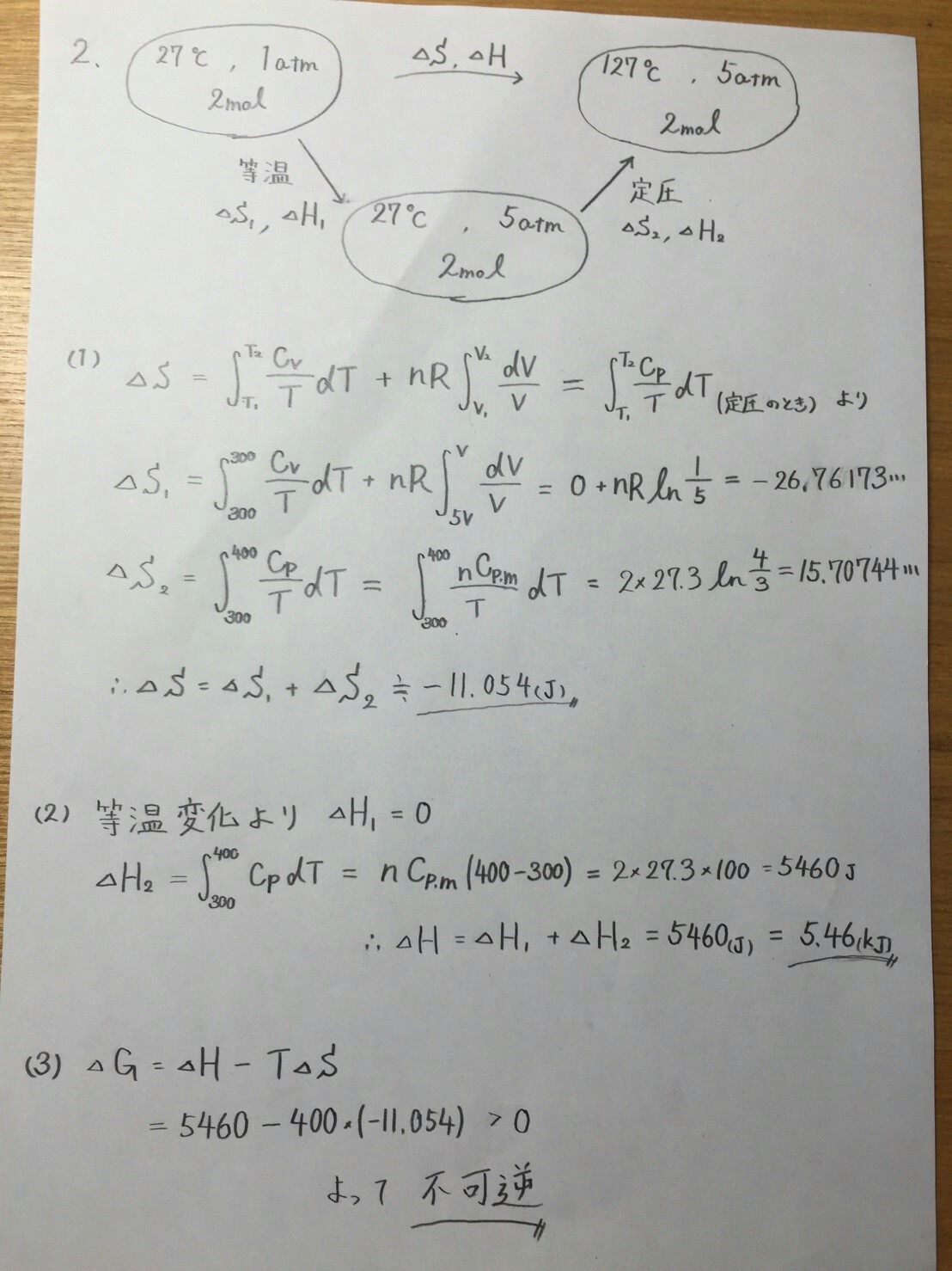 載せていた解答の気体定数が間違っていたようなので、訂正版をのせました。