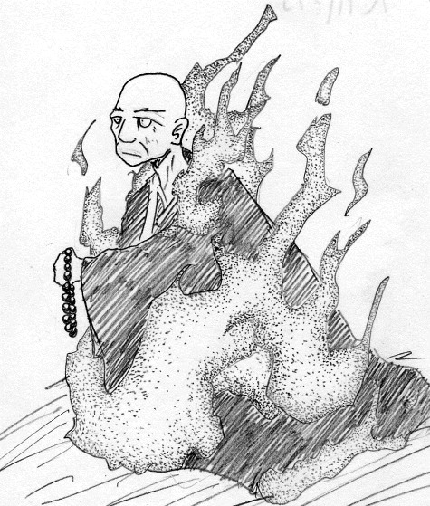 鳥山石燕は画集『今昔百鬼拾遺』で、炎に包まれる坊主を描いている。また、死者を焼く煙が立ち込める鳥辺野の地から「あやしき形の出たれば、かぜん坊と名づけた。」と言っている。