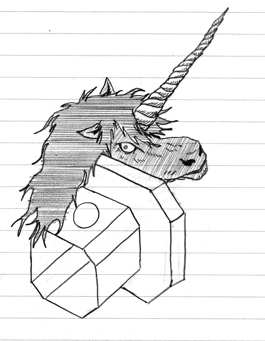 元々、普通の馬で、ある家の娘を見初めて嫁にしたいと思った。娘は「おまえに角が生えたら結婚してやる。」と言ったが、翌日、馬は本当に角を生やして来た。しかし、娘が結婚を拒んだため、角で突き殺してしまった。それを見た島の者は、馬の首を斬り、神社に祀った。しかし、馬の首は、その後も死なずに飛び回ったと伝えられている。