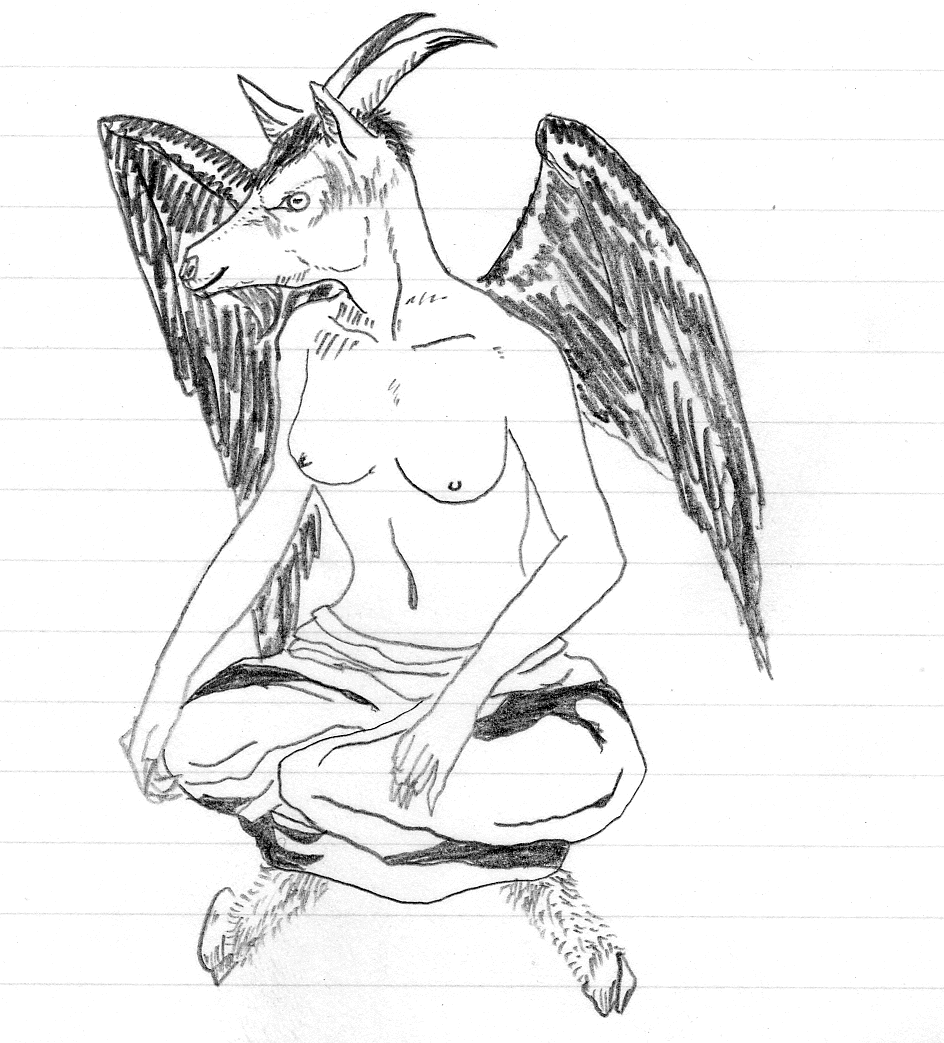 姿に定説はなく、顔は1つとも2つとも3つともいわれ、白い顎鬚を生やして目を輝かせる老人だとか、女性だとか、猫だとかいわれる事があるが、山羊の顔が一般的。女性(または両性具有)の身体をして、背中から烏の羽を生やしている。