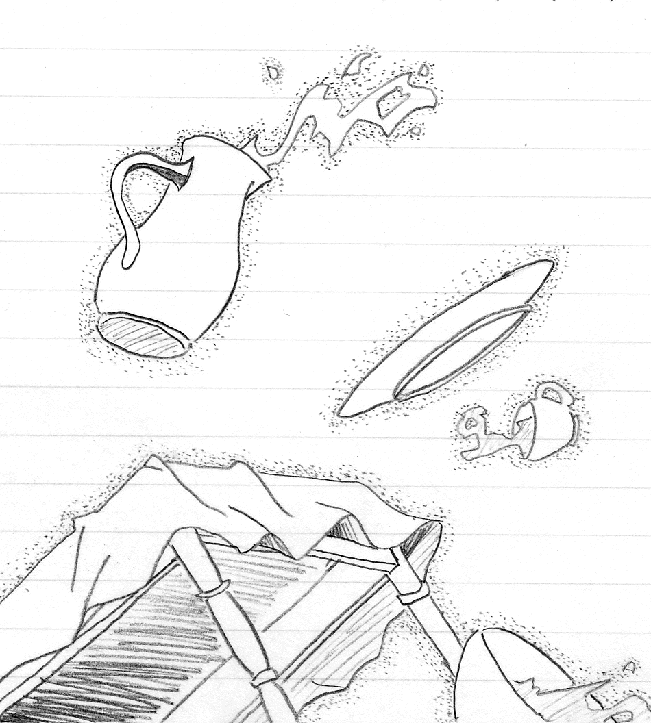 その名の如く、深夜に裂けるような乾いた音が部屋の中に響き渡り、テーブルや食器、小物などが宙を舞う怪現象。