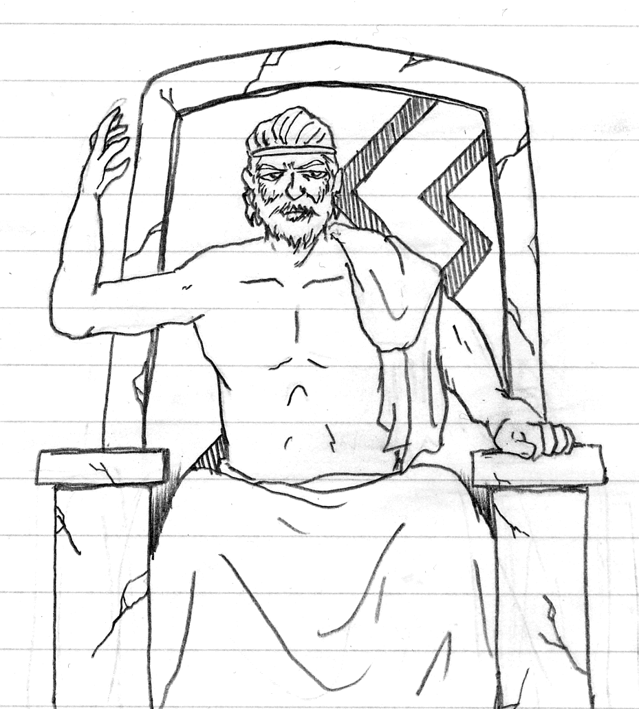 がっしりした体つきと厳かな顔つきの男性として描かれた。豊かな巻き髪と髭を蓄えてローブを身に纏っている。左手には王笏、右手には雷を持っており、足元には鷲、額には樫の葉の冠をつけている。