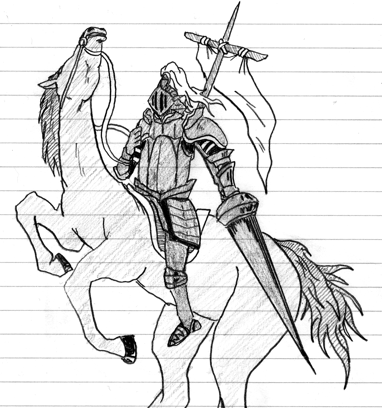 黒い鎧に身を包んだ騎士で、黒い軍馬に乗っている。右手には軍旗の付いた騎士槍を持ち、左手には王笏、或いは毒蛇を持っている。