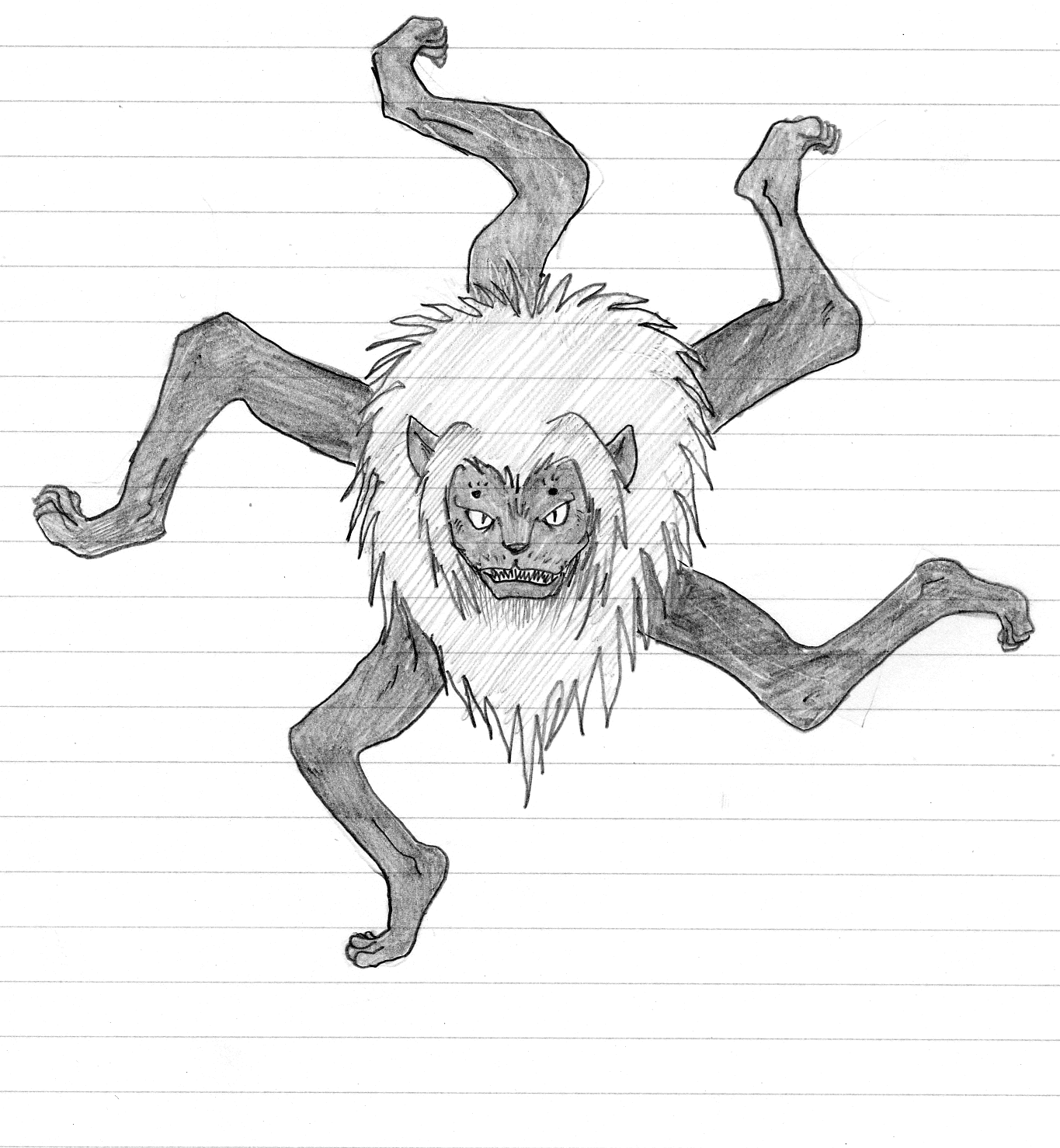ヒトデの姿か、星のように銀色に輝く肌をしたケンタウロスの姿をしていると言われるが、最も有名な姿は、五本の脚を持った頭だけの獅子である。