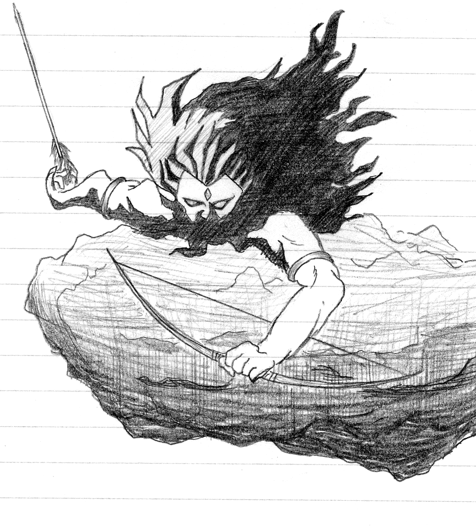 好戦的な青年で、戦いと殺戮を象徴するが、一方で雨、医薬、財宝、詩的霊感を人間に与えてくれるという。