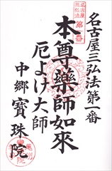 名古屋市中川区、宝珠院の御朱印「本尊薬師如来」です。