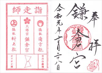 鎌倉市、大塔宮護良親王を祀る鎌倉宮の御朱印です。