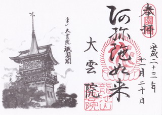 京都市東山区、大雲院・祗園閣の御朱印「阿弥陀如来」です。