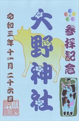 大野神社の御朱印帳です。16cm×11cmです。