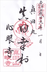 大阪市天王寺区、心眼寺の御朱印「真田幸村」です。