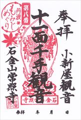 丹波市、小新屋(こにや)観音の御朱印「十一面千手観音」です。